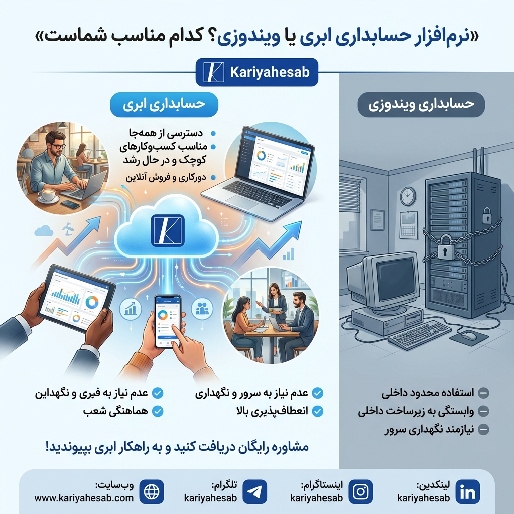 حالا اگر شرکت بزرگتری دارید و داخل مجموعه شبکه و سرور راهاندازی شده ، داستان فرق میکند. بعضی مدیران ترجیح میدهند اطلاعات مالی فقط روی سیستمهای داخلی ذخیره شود. اگر تیم IT دارید که از سرورها نگهداری میکند ، نرمافزار ویندوزی میتواند انتخاب قابل قبولی باشد و با ساختار داخلی شرکت هماهنگتر کار کند.